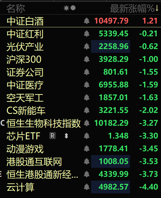 午后的A股依然震荡走弱,盘面上,白酒、食品饮料等涨幅居前,机器人、云计算、算力等跌幅居前。